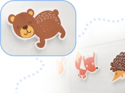 Vrolijke motieven zoals giraffe, tijger, aapje en egel spreken kinderen aan met hun felle kleuren en stimuleren creatief combineren en verhalen verzinnen.