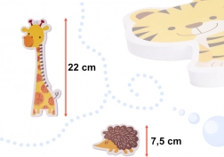 Maak van het badderen een vrolijke watersafari! Deze set bevat 18 lichte foamen diertjes die na het natmaken aan het bad en de tegels hechten, op het water drijven en snel drogen. Een geweldige speelgoedset voor de ontwikkeling van fijne motoriek, logisch denken en creativiteit tijdens het dagelijkse badmoment.
