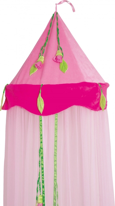 Verrijk de kinderkamer met de Small Foot baldakijn, die niet alleen een decoratief element biedt, maar ook praktische bescherming tegen insecten. Door zijn roze kleur en bloemversieringen creëert hij een betoverende sfeer in de kinderkamer: