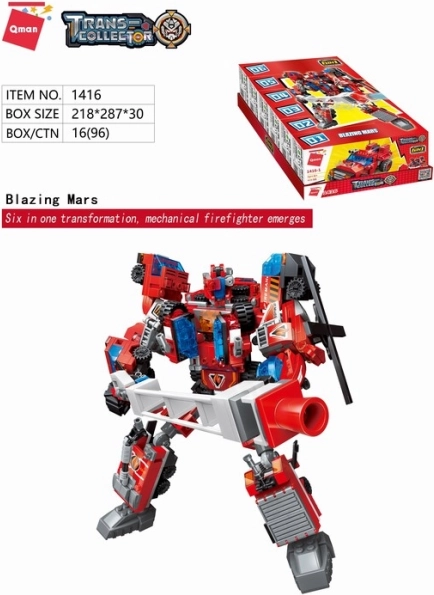 Ontdek de QMAN Blazing Mars 6-in-1 bouwset, die kinderen creatief bouwen, brandweeractie en de mogelijkheid om modellen te combineren tot een grote mech biedt. De set van duurzaam ABS-plastic is compatibel met Lego, Sluban, Cobi en meer, heeft 2 moeilijkheidsniveaus en in totaal 496 stenen voor uren speelplezier.