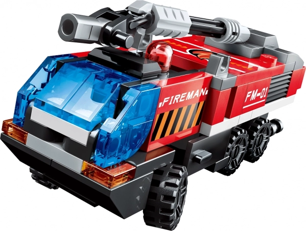 Bouw diverse brandweerwagens en een helikopter voor reddingsmissies, bluswerk en evacuaties. Ideaal voor spannende verhalen en teamwork.
