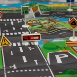 Het pakket bevat verschillende verkeersborden en stickers die het mogelijk maken om je eigen stad te creëren en spelenderwijs de basis verkeersregels te leren. Het kind kan genieten van het ontdekken van nieuwe verhalen en situaties op het kleurrijke speelveld.