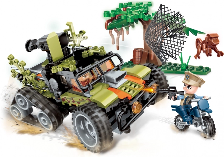 De actie-bouwset QMAN uit de serie Police Battle Force brengt een jacht op een stroper in de jungle met een werkende netwerper, terreinvoertuigen en 2 minifiguren. In de doos vind je 227 onderdelen van duurzaam ABS-kunststof, compatibel met LEGO en andere merken.