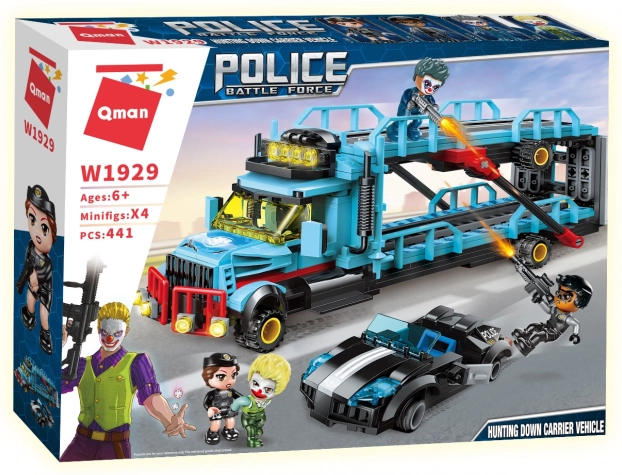 Stap in de wereld van politieacties met de gedetailleerde Qman Police Battle Force bouwset. De tweelaagse dievenvrachtwagen staat klaar voor de vlucht, maar jouw eenheid in de snelle wagen is ze een stap voor. Met 441 onderdelen geniet je van bouwen en spelen met volop mogelijkheden voor ombouw en verschillende scenario’s.