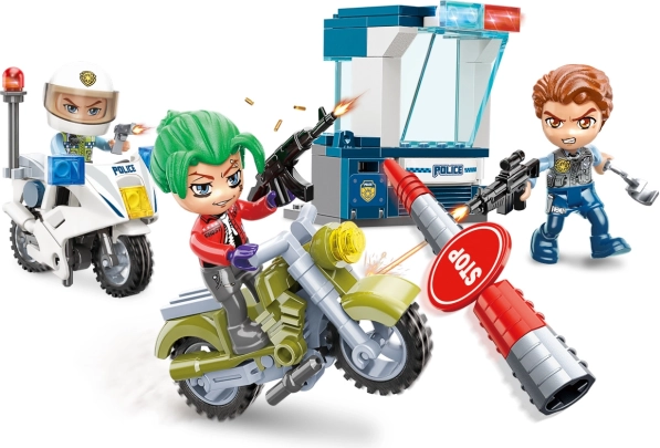 De set bevat een actiescène met een politiemotor in achtervolging van een misdadiger op een motorfiets.