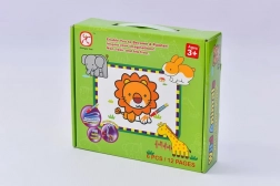 De inlegpuzzels Dieren en Waterverf zijn de ideale combinatie voor het ontwikkelen van fantasie en fijne motoriek. Kinderen kunnen genieten van zes verschillende afbeeldingen – konijn, olifant, giraffe, leeuw, zebra en tijger.