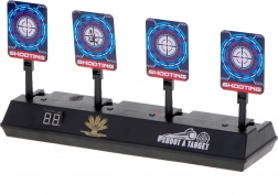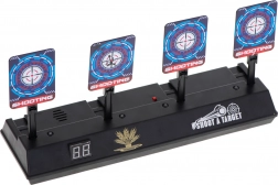 Verbeter je precisie met het elektronische schietdoel met vier neerklapbare doelen en een digitaal scoreteller. Ideaal voor kinderpistolen met foam pijltjes, met licht- en geluidseffecten voor nog meer plezier. Na het raken van alle vier de doelen komen de doelen automatisch omhoog en kan het spel verdergaan.
