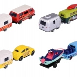 De modellen bootsen echte voertuigen na met openslaande deuren, kofferbak en motorkap. Elk model heeft een aanhanger of boot.