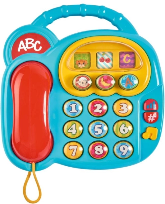 Een leuke en leerzame kindertelefoon met headset die de fijne motoriek ontwikkelt en leren van cijfers, letters, fruit en dieren stimuleert. Bij het indrukken van de toetsen speelt hij cijfergeluiden, melodieën af en simuleert hij het kiezen van een telefoonnummer. Op het “display” verschijnen bij het draaien willekeurige afbeeldingen die nieuwsgierigheid en spel prikkelen.