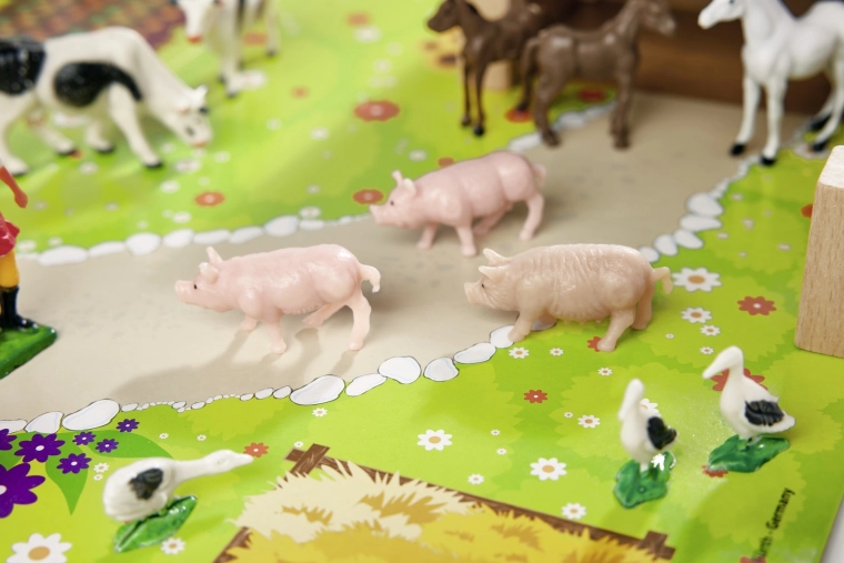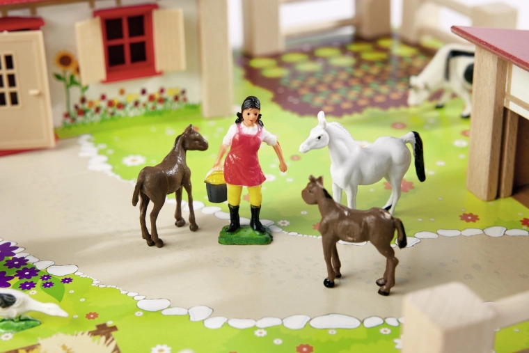 Paarden, koeien, biggetjes, ganzen en een verzorgster prikkelen de fantasie, leren kinderen diersoorten herkennen en ontwikkelen sociale vaardigheden binnen rollenspel.