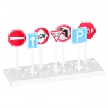 Inclusief drie gele bouwvoertuigen – graafmachine met beweegbare arm, betonmixer en bulldozer – plus 7 verkeersborden. Alles past in het vliegtuig. De speelset heeft afneembare vleugels om ruimte te besparen en een handgreep voor gemakkelijk dragen.