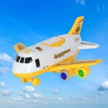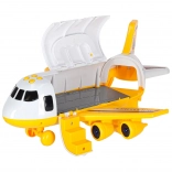 Groot transportvliegtuig voor kinderen dat drie bouwmachines en een set verkeersborden aan boord meeneemt. Heeft een openslaande laadklep, zijtoegang, LED-lichteffecten en realistische geluiden bediend met vier knoppen. Dankzij de afneembare vleugels en de praktische draaggreep is het eenvoudig te vervoeren en op te bergen.