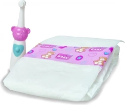 Praktische set accessoires voor poppen van 30–38 cm, met alles voor comfortabel in slaap brengen en verzorgen. Bevat een slaapzak, tandenborstel, luier en flesje – ideaal voor dagelijks spel en het ontwikkelen van de fantasie.