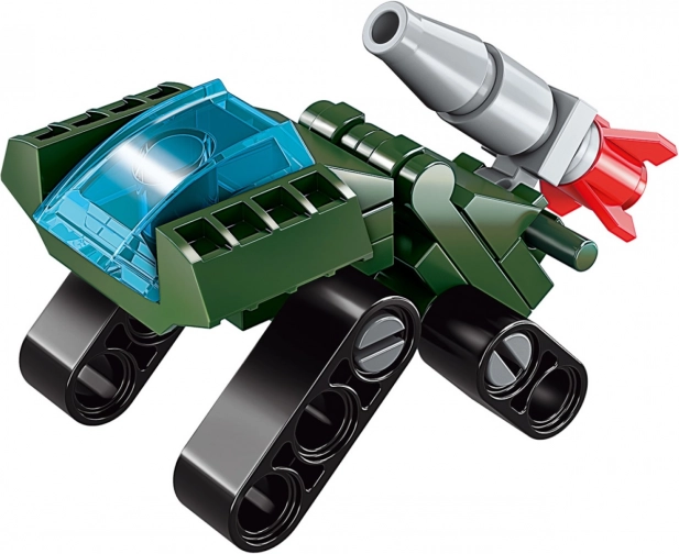 Bouw een tank, een voertuig met kanon of je eigen variant. Ombouwen gaat snel en is leuk, ideaal om creativiteit te stimuleren.