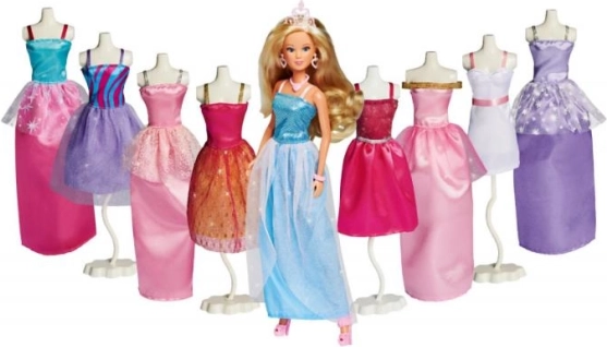 Maar liefst 8 prachtige jurken in verschillende kleuren en stijlen laten kinderen unieke modecreaties maken voor elke scène en elk verhaal.