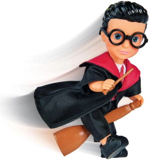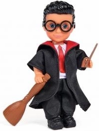 Popje Timmy als tovenaar in een magische mantel, met een toverstaf en een bezem. Grootte van het popje: 12 cm.