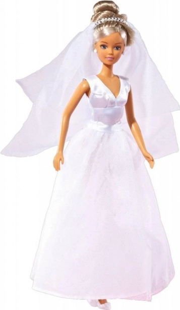 De Steffi bruidspop komt in een prachtige witte bruidsjurk met sluier, met verfijnde details en een elegante uitstraling. Een geweldige keuze voor kinderen die van modepoppen houden en magische trouwmomenten willen naspelen.