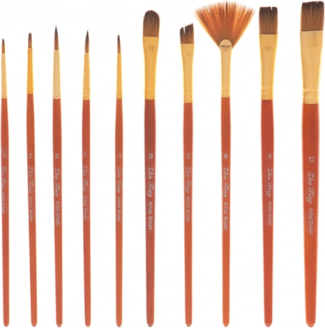 De set bevat 10 artistieke kwasten, geschikt voor gebruik met verschillende soorten verf. Dankzij de punten van verschillende diktes is het eenvoudig om ingewikkelde vormen te creëren en de dunne kwasten maken het mogelijk om elk detail te verfijnen. Elke kwast is genummerd, waardoor de juiste maat gemakkelijk te kiezen is.