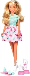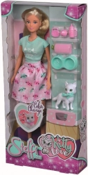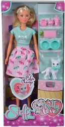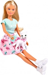 Bereid je voor op plezier met de unieke pop Steffi Kitty Love. Deze pop draagt een moderne outfit met kattenmotieven en komt met een witte kitten en een hanger. Kleine meisjes kunnen hun moederinstinct verkennen door voor de kitten te zorgen, deze te voeden en het gezicht met de bijgeleverde doek schoon te maken.