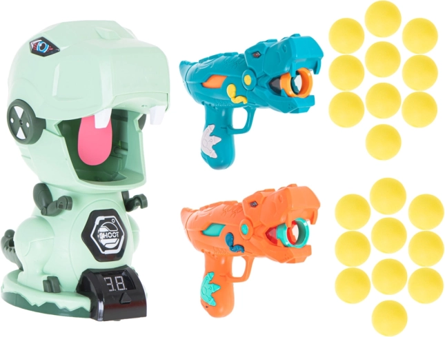 Twee stijlvolle pistolen in dinosaurusvorm maken het mogelijk om zachte foam balletjes veilig en effectief te schieten. Ideaal voor spellen in paren en wedstrijden.