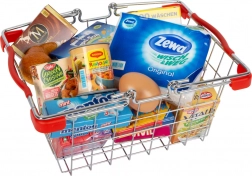Dit schattige maar stevige metalen winkelmandje SMALL FOOT is een geweldige aanvulling op alle kinderkraampjes en speelkeukens. Het is tot de rand gevuld met kunststof mock-ups van bekende voedingsmiddelen en producten voor dagelijks gebruik, zodat kinderen realistisch kunnen oefenen met winkelen, sorteren en bedienen. De samenstelling van de meegeleverde mock-ups is variabel, waardoor elke set een andere verrassing kan bieden.