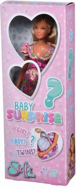 Ontdek de magie van spelen met de Steffi Love Baby Surprise – een zwangere pop met een geheim in haar buik. Wacht er een verrassing: een jongetje, een meisje of een tweeling? In de verpakking vind je meer dan 11 accessoires voor verzorging en het naspelen van familiesituaties. De pop is 29 cm groot en is verkrijgbaar in 3 verschillende uitvoeringen.