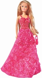 De elegante pop Steffi Love Prinses Gala laat kinderen zich onderdompelen in de wereld van mode en fantasie. Gekleed in een prachtige jurk met rozenmotieven en uitgerust met een handtas, ideaal voor elk speelavontuur.