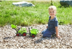 De volledig mechanische voorlader maakt het mogelijk om zand, steentjes of blokken te scheppen en ondersteunt de ontwikkeling van motoriek en fantasie.