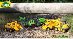 De LENA ECO tractor brengt plezier én verantwoordelijkheid voor de natuur. Dankzij de robuuste afwerking van gerecyclede materialen met houttoevoeging is hij duurzaam en veilig voor kleine bestuurders. De voorlader is volledig functioneel en maakt het mogelijk om materiaal te scheppen en te verplaatsen, wat fijne motoriek en creatief spel stimuleert.