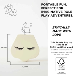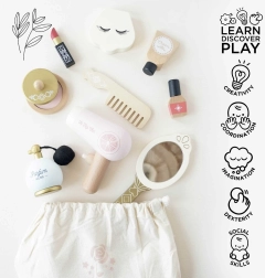 Een stijlvolle cosmetische tas voor kleine visagisten van Le Toy Van, voor veilige en creatieve speelpret. Bevat houten accessoires van FSC®-hout, met de hand afgewerkt met niet-giftige verf op waterbasis. Perfect voor rollenspel en het ontwikkelen van fijne motoriek, verbeeldingskracht en communicatie. De praktische textielen zak houdt alles netjes bij elkaar, thuis en onderweg.