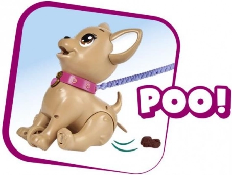 Interactieve chihuahua Poo Poo CHI CHI LOVE: voer met klei, laat uit en ruim op. Set met riem en zakjes, formaat ca. 20 cm, ideaal voor kinderen vanaf 3 jaar.