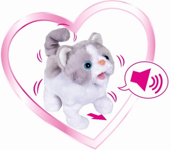 Deze grijs-witte pluche kat CHICHI LOVE is heerlijk zacht om aan te raken en tegelijk vol verrassingen. Dankzij de interactieve functies brengt ze kinderen nog meer plezier – ze kan bewegen, met haar staartje kwispelen en realistische geluiden maken die het spel tot leven brengen.