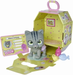 De set bevat: een kitten van 15 cm met luier, plasfunctie, 3 verrassingen en een adoptiecertificaat. Alles is verpakt in een stijlvol kartonnen doosje dat kan dienen als een draagbaar huisje. Cadeau-accessoires zijn verpakt in speciale zakjes.