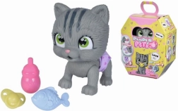 Het kitten PAMPER PETZ is het perfecte huisdier voor kinderen die plezier beleven aan de magie van adoptie en verzorging van een klein speelgoed. Het speelgoed kan echt water uit een flesje drinken en vervolgens plassen in de luier die van kleur verandert als deze nat is. Het magische pootje geeft aan of het kitten een jongen of meisje is.