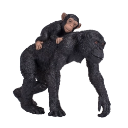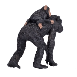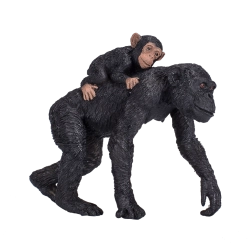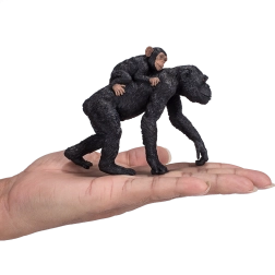 Ontdek de wereld van primaten met dit gedetailleerde figuur van een chimpansee die haar jong op de rug draagt. De precieze vachttextuur, realistische kleuring en stabiele houding maken het een aantrekkelijke toevoeging aan de kinderkamer en aan elke collectie.