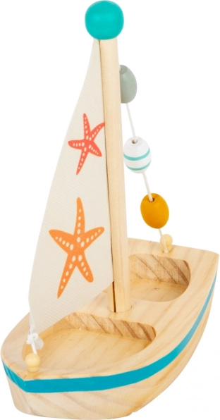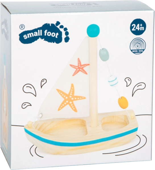Small Foot houten zeilboot met zeesterren voor in het water
