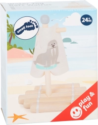 Ontdek het plezier op de golven met het houten vlot van small foot, perfect voor kleine zeelieden. Dankzij het natuurlijke materiaal, de stevige afwerking en het textielen zeil met vrolijk walrusmotief genieten kinderen urenlang van spelen bij elk badmoment. Het speelgoed is geschikt voor bad, teiltje, zwembad en rustige natuurlijke wateren – leg het gewoon op het water en laat het drijven.