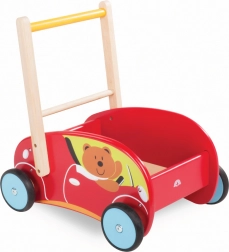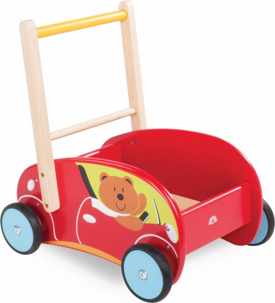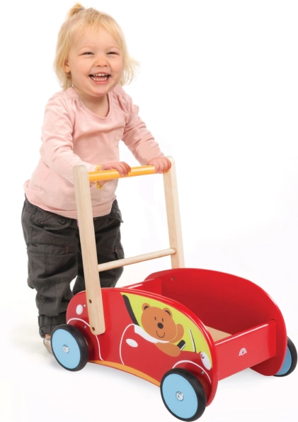 Wil je dat je kleintje zijn mobiliteit ontwikkelt en spelenderwijs leert lopen? De houten loopwagen in de vorm van een auto is de ideale helper. Hij is uitgerust met rubberen wielen voor een stille beweging en een systeem voor snelheidsregeling dat je kind beschermt tegen vallen. Kinderen vinden er ook een opbergruimte voor hun favoriete speelgoed.