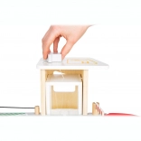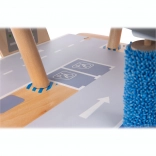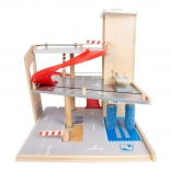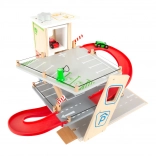 Deze premium parkeergarage van hoogwaardig houten multiplex biedt drie rijk uitgeruste niveaus die met een werkende lift en twee soepele hellingen zijn verbonden. Kinderen kunnen parkeren, tanken, opladen, wassen en repareren – alles op één plek, met realistische elementen en uitstekend speelplezier.