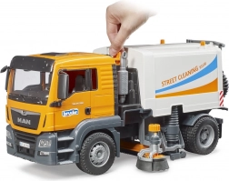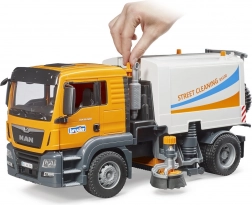 De realistische BRUDER MAN TGS veegwagen op schaal 1:16 biedt kinderen een authentieke ervaring van het schoonmaken van stadsstraten. Dankzij de functionele borstels, de flexibele zuigslang en de kiepbare container leren ze moeiteloos hoe echte reinigingsvoertuigen werken. De robuuste constructie van hoogwaardige kunststoffen garandeert een lange levensduur en veilig speelplezier.