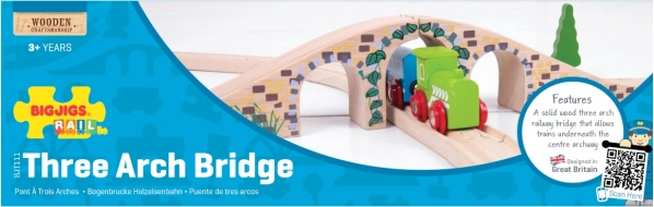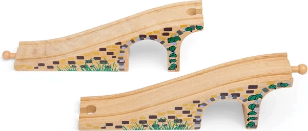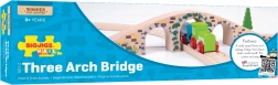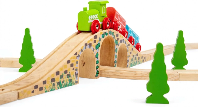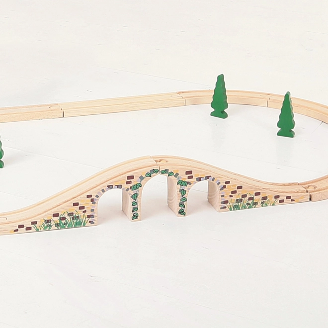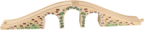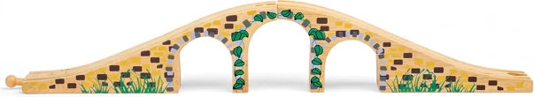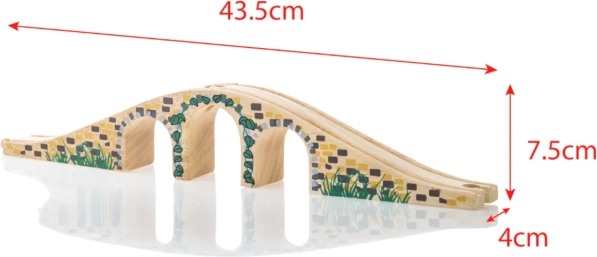 Deze stijlvolle drieboogbrug is een perfecte aanvulling op elke houten treinbaan. Dankzij realistische details van stenen bakstenen en het gladde oppervlak geeft hij je baan hoogtevariatie en visuele aantrekkingskracht. Treinen kunnen over én onder de brug rijden, wat zorgt voor speelse scenarios.