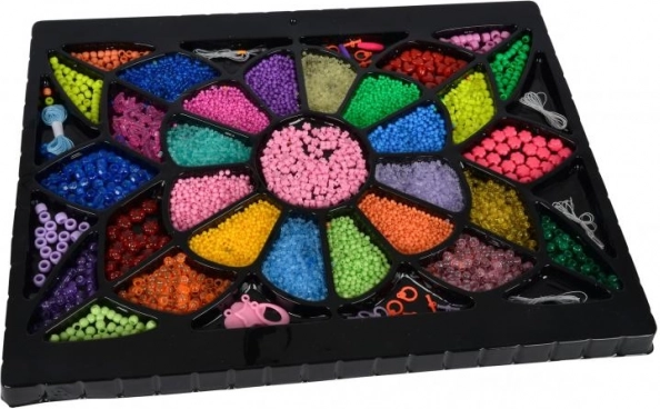 Ontdek de vreugde van creativiteit met deze cadeauset kralen A&F, bestaande uit 10.000 kralen in verschillende vormen en kleuren, aangevuld met accessoires zoals rijgkoord en sluitingen.