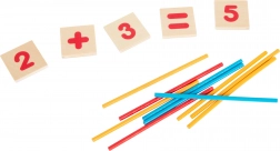 Stokjes in rood, geel en blauw helpen rekenbewerkingen visueel te begrijpen en verbeteren het praktisch leren.