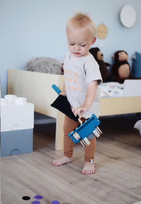 De stofzuigerzak dient als opbergruimte voor fleece stukjes vuil, die geen extra ruimte innemen in de kinderkamer.
