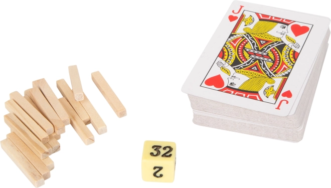 Ontdek een rijke collectie tafel-, bord- en kaartspellen in één elegante houten box. Dankzij de verdeelde vakken en de vilten bodem heeft elk onderdeel zijn plek en raakt er niets kwijt. De set biedt snelle en strategische spellen voor allerlei gelegenheden – van een ontspannen middag met de kinderen tot avondlijke uitdagingen met vrienden.