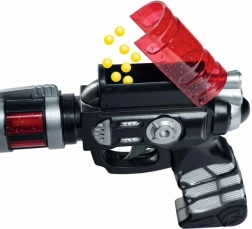 Het futuristische uiterlijk in twee kleurvarianten – rood en groen – maakt elke kleine sci‑fi fan blij. Het pistool heeft een compacte lengte van 18 cm, ligt goed in de hand en is ideaal voor snelle duelletjes en precisietraining.