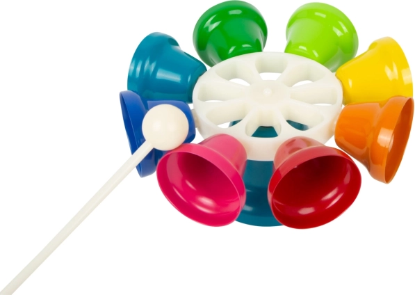 Met de meegeleverde witte stok tikken kinderen eenvoudig ritmes en melodieën. De belletjes kunnen op de standaard worden bespeeld of in de hand worden gehouden.