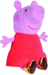 De geliefde heldin uit de serie Peppa Pig als pluchen vriendinnetje met geluid. Druk zachtjes op het buikje en Peppa laat grappige geluiden horen die het speelplezier vergroten en de kinderlijke verbeelding stimuleren. Het zachte materiaal is vriendelijk voor de gevoelige kinderhuid en nodigt uit om te knuffelen.