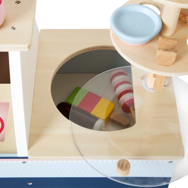 De doorzichtige vitrine en het vriesvak maken realistisch spelen en presenteren van ijsjes mogelijk.