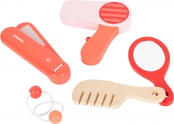 Bevat 12 stuks accessoires, waaronder een kam, spiegel, föhn en andere cosmeticabenodigdheden.
